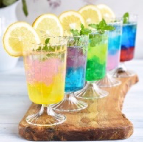 コンビカラーや箱推しカラーも楽しめる、カラフルなゼリードリンクです。ストロベリーやグリーンアップル、ローズなど、好きな推し色を組み合わせて自分だけのオリジナルドリンクを作ってみてはいかがでしょうか。