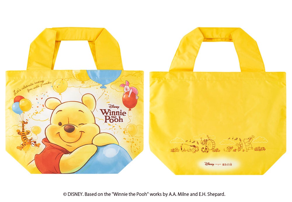 『くまのプーさん/「銀座のハニーケーキ」です。』にエコバッグが付いた特別なセットを発売いたします。表には「プーさん」たちが風船で遊ぶデザイン、裏には鼓笛隊を組んだ仲間たちが描かれた、今回だけの特別なデザインです。(数量限定となります)