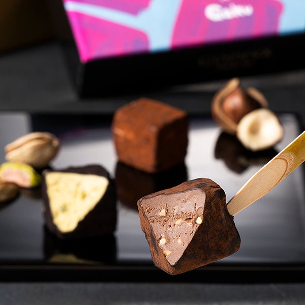 どれもプラリネをカカオパウダーのみでコーティングしているので、ひと口頬張った瞬間に感じる繊細ななめらかさ、柔らかい口どけ、ナッツの歯ざわりと香ばしさをお楽しみいただけます。