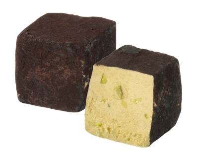 ピスタチオの独特な香ばしさとコクをまろやかなプラリネに閉じ込め、カカオパウダーで飾りました。「ナッツの女王」ピスタチオの濃厚で芳醇な味わいは、後を引く美味しさです。