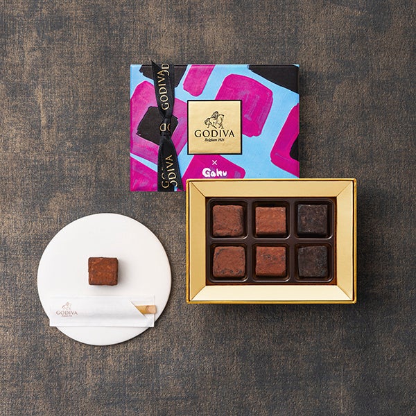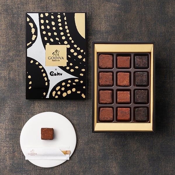 「感性」と「感覚」に重きをおいたGAKUの作品からは、人々を幸せにするエネルギーが感じられ、チョコレートを通じて幸せな時をお届けしたいというゴディバの想いとマッチし、コラボレーションが実現しました。ゴディバのプレミアムな世界とGAKUのアートとの調和をお楽しみいただけます。