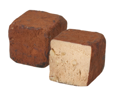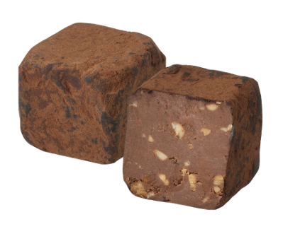 やわらかく、シルクのような口どけのアーモンドプラリネとローストしたアーモンドダイスとのハーモニーが誰をも夢中にさせるような美味しさです。ドミニカ産のカカオパウダーでデコレーションしました。