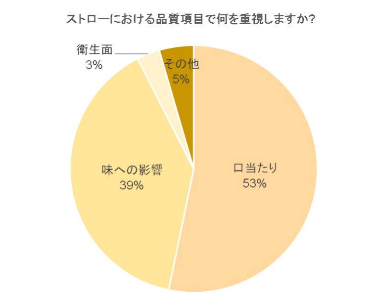 また、ストローで重視する項目が「口当たり」「味への影響」の2項目であることが分かり、この2点においてステンレスストローは高評価でした。