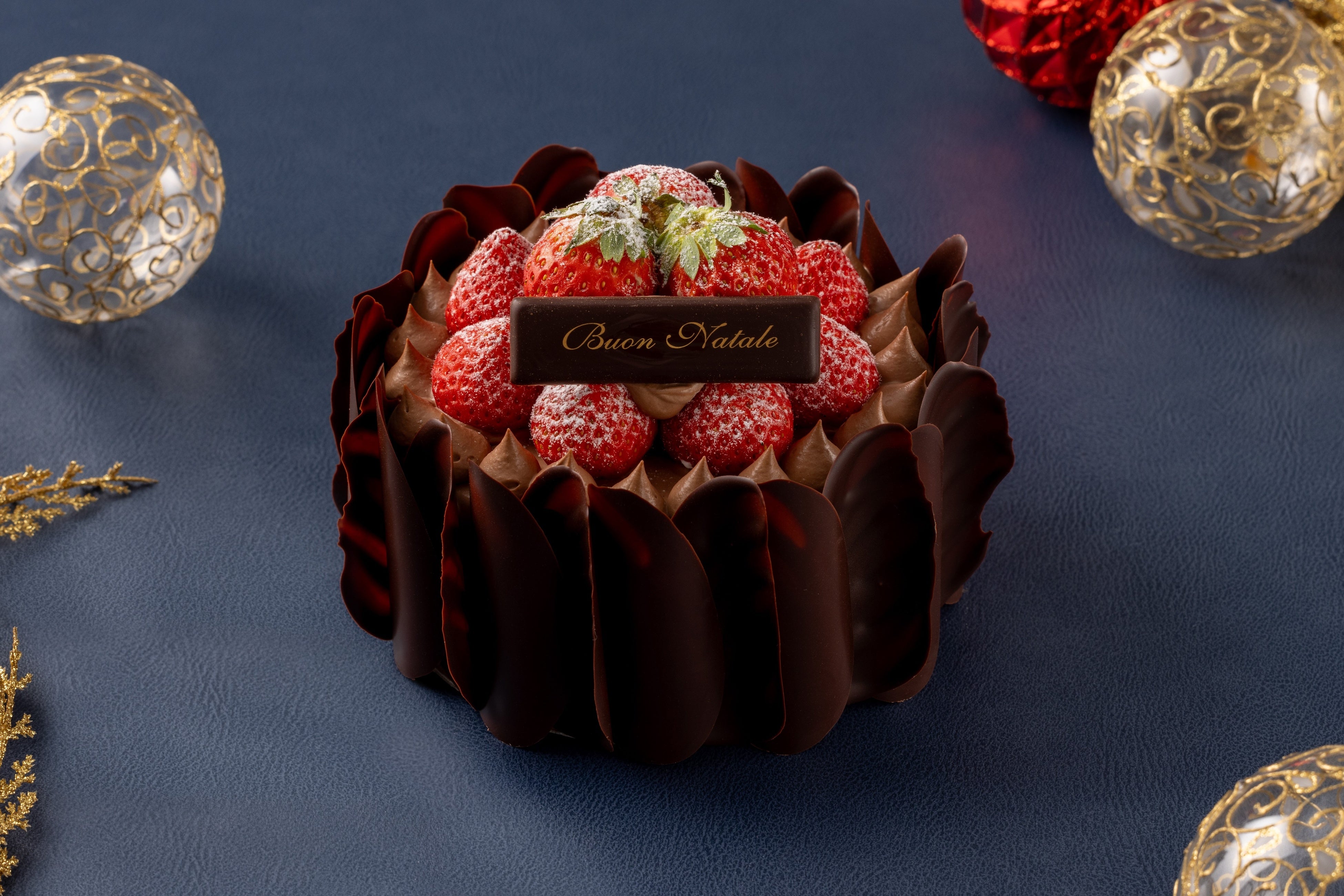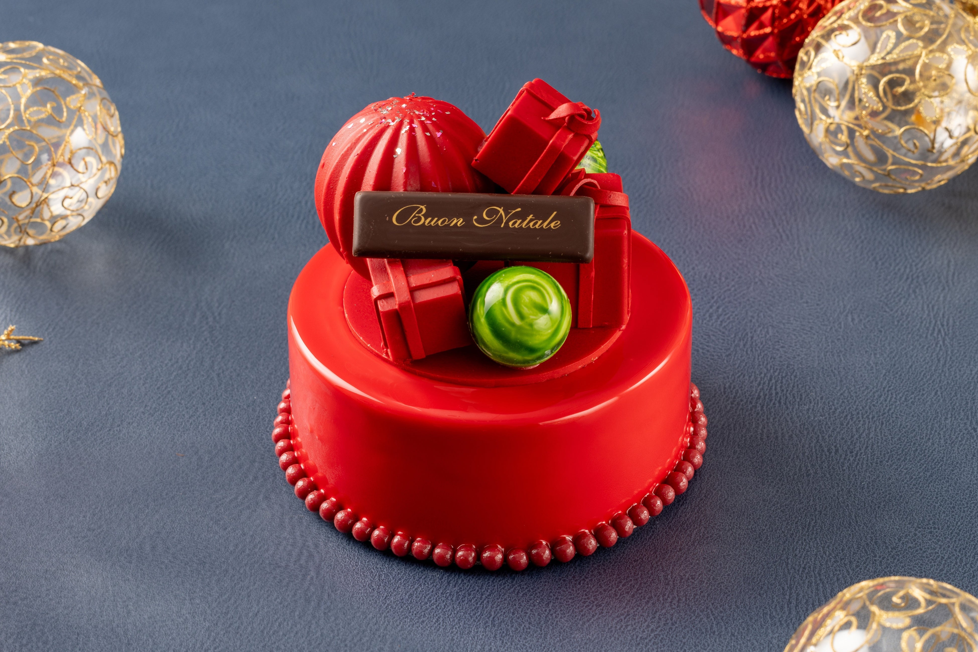 昨年ご好評をいただいたベリームース。今年はストロベリームースをベースに、ピスタチオブリュレを新たに加え、ピスタチオのスポンジ生地、フレーズ デ ボワ(野いちご)のジュレなど5種類の階層が織りなすハーモニーをお楽しみいただける、クリスマスらしい鮮やかな真紅のケーキに仕上げます。ベリーならではの爽やかな酸味で重くなくさっぱりとお召し上がりいただけます。