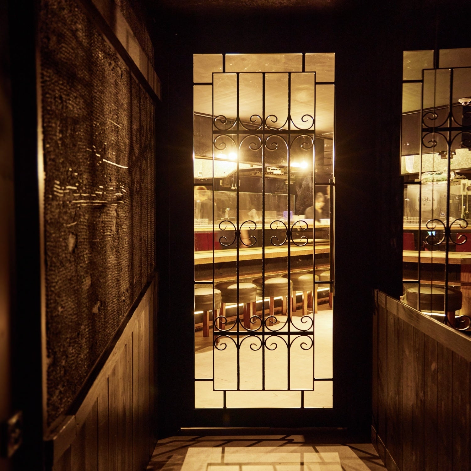 鉄黒の、一見重そうな扉を押し開ければ、思わず引き寄せられてしまう音楽と、炭焼き台から立ち昇る美味しい煙が、お客様への歓迎の証です。