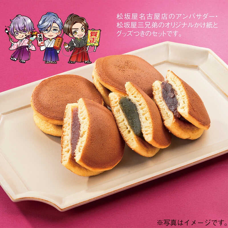 松坂屋名古屋店のアンバサダー・松坂屋三兄弟のオリジナルかけ紙とグッズつきのセットです。