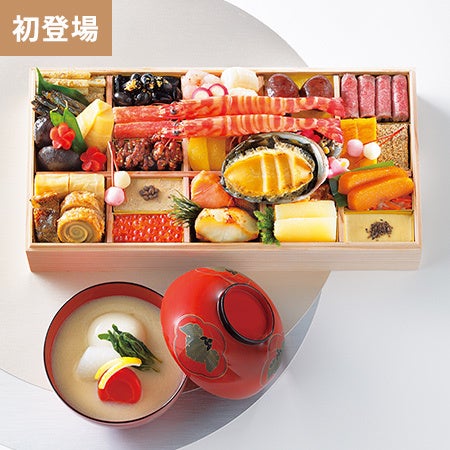 世界的グルメガイドで一つ星獲得の名店が、初めて手がけたおせち。京都の名料亭出身の藤山氏が「長年培った経験を表現したかった」という渾身の仕立てです。お正月の祝膳にかかせないとこだわり抜いたお雑煮を添えてお届けいたします。