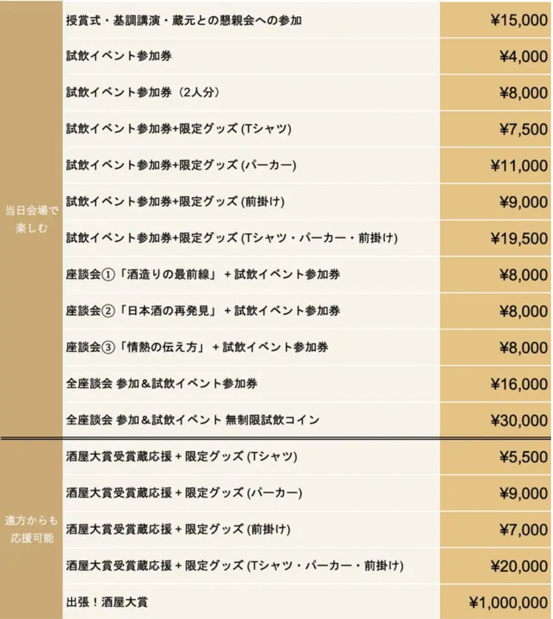 ・試飲イベント:前売券 4,000円 *Makuakeにて販売 / 当日券 5,000円