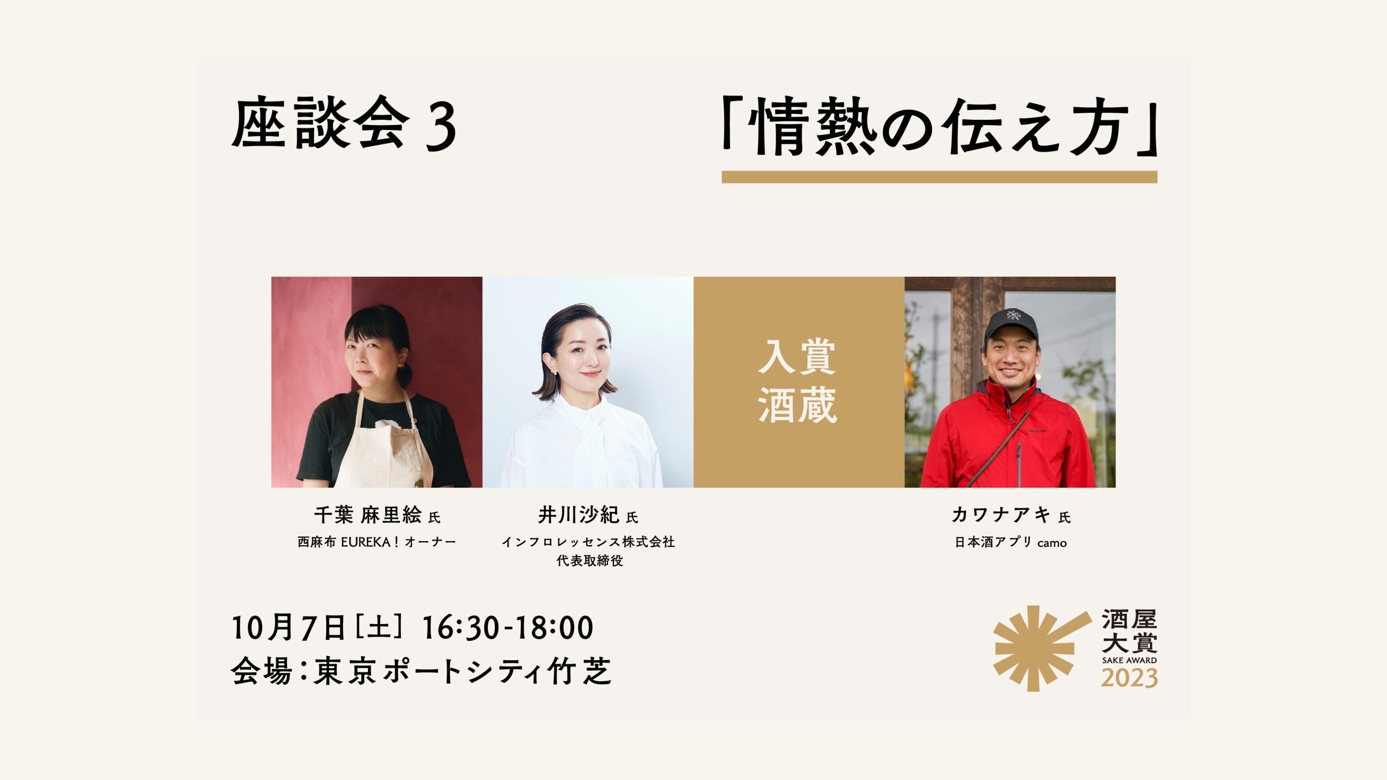 『酒屋大賞』開催を記念して、受賞発表会の翌日2023年10月7日(土)には、2023年『酒屋大賞』入賞蔵のお酒を含む、ノミネートされた20蔵60銘柄のお酒の試飲イベントや日本酒に関わる様々なプロフェッショナルたちが集う座談会を実施します。チケットのご購入でどなたでも参加いただけます。