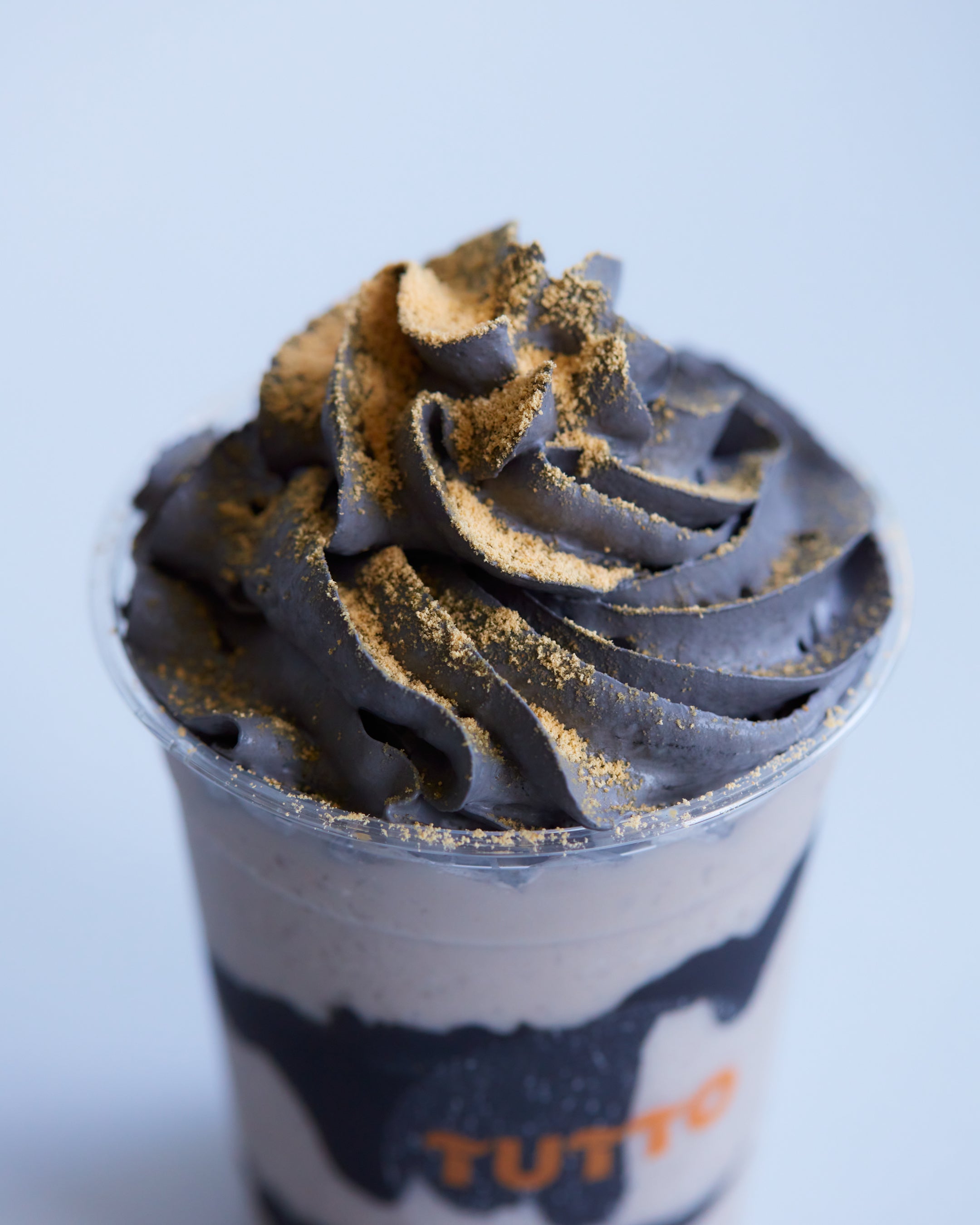 リリース当初からTUTTOファンから根強い人気の「黒胡麻きな粉」ジェラートから”黒胡麻きな粉 ベラート”が新登場。インパクトあるブラックの豆乳クリームには、オーガニック竹炭パウダーが練り込まれています。きなこのトッピングが更に風味豊かな味わいを引き立てる、ちょっと大人なベラートです。