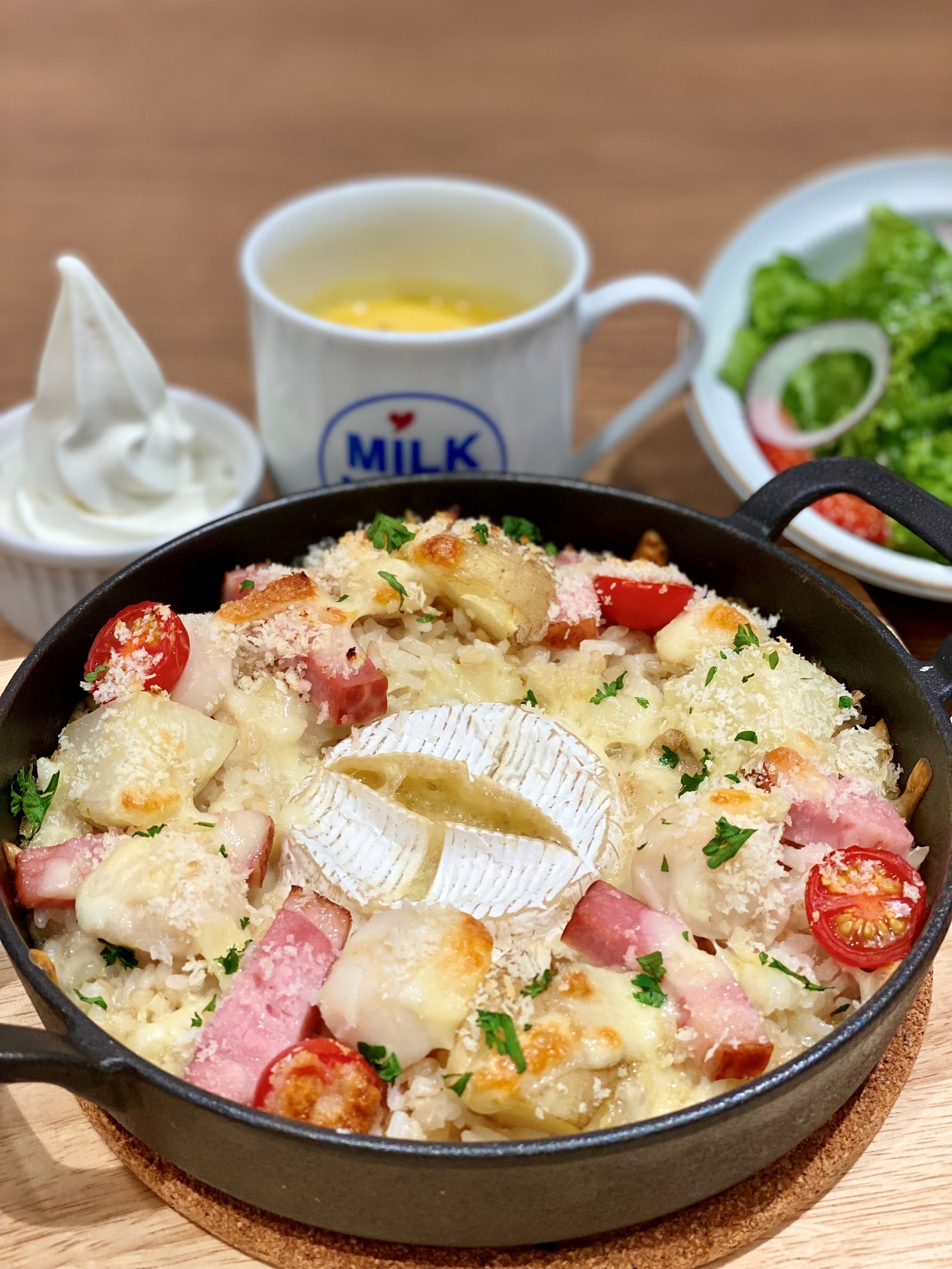 『北のジャーマンホタテチーズドリア』は、北海道産ホタテの貝柱、北海道産ジャガイモ、北海道産カマンベールチーズをメインに様々な牛乳・乳製品を使った、まさに北海道を代表する農水産物のオールスターの美味しさを詰め込んだメニューです。一皿で北海道の美味しさを満喫できる一品です。