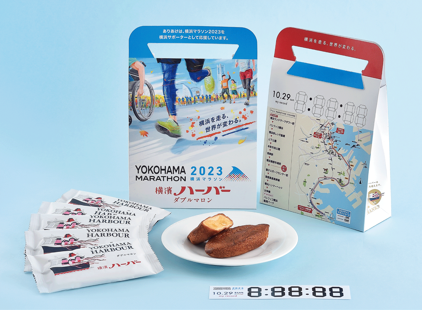 また開催当日の10月29日(日)には、横浜マラソンフェスタ2023(横浜マラソンフィニッシュ会場 パシフィコ横浜 臨港パークにて)のありあけブースでも販売します。“地域に貢献する”を経営理念に掲げるありあけは、今年も横浜マラソン2023を横浜サポーターとして応援します。