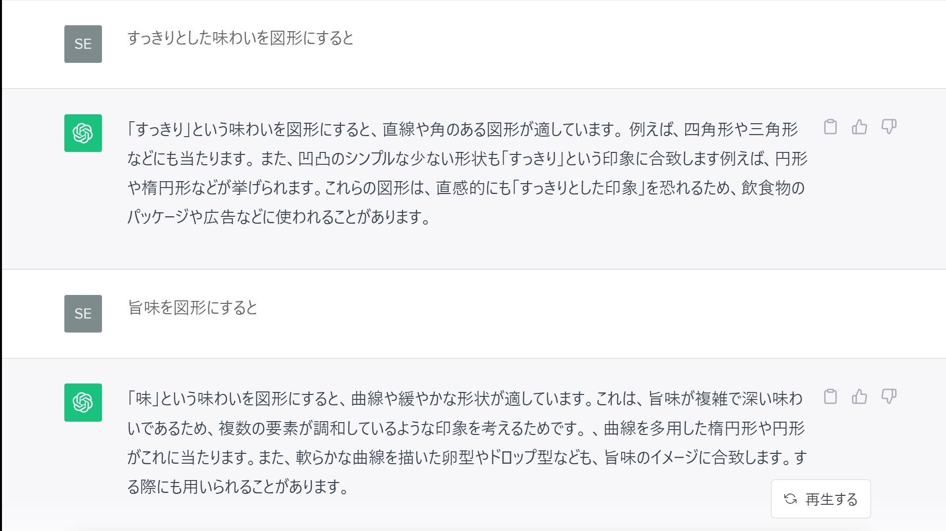 味わいを図形化するためにはどうしようかと模索していたところ、代表の丸谷から「これまで通りの商品作りでは若い⽅に届かない。今はみなが情報を検索してキャッチアップする時代。ネット上の言葉や表現を集約しているChatGPTの力を借りてみてはどうか。」という提案がありました。