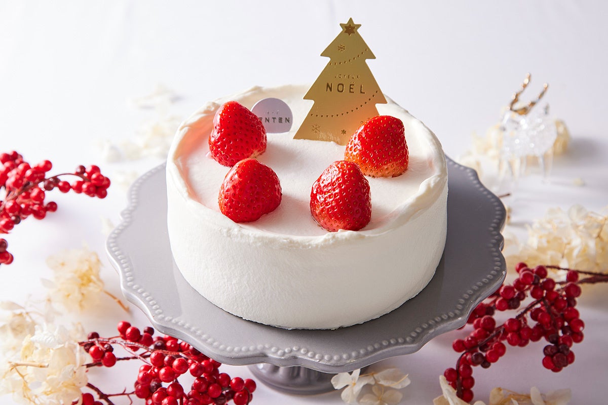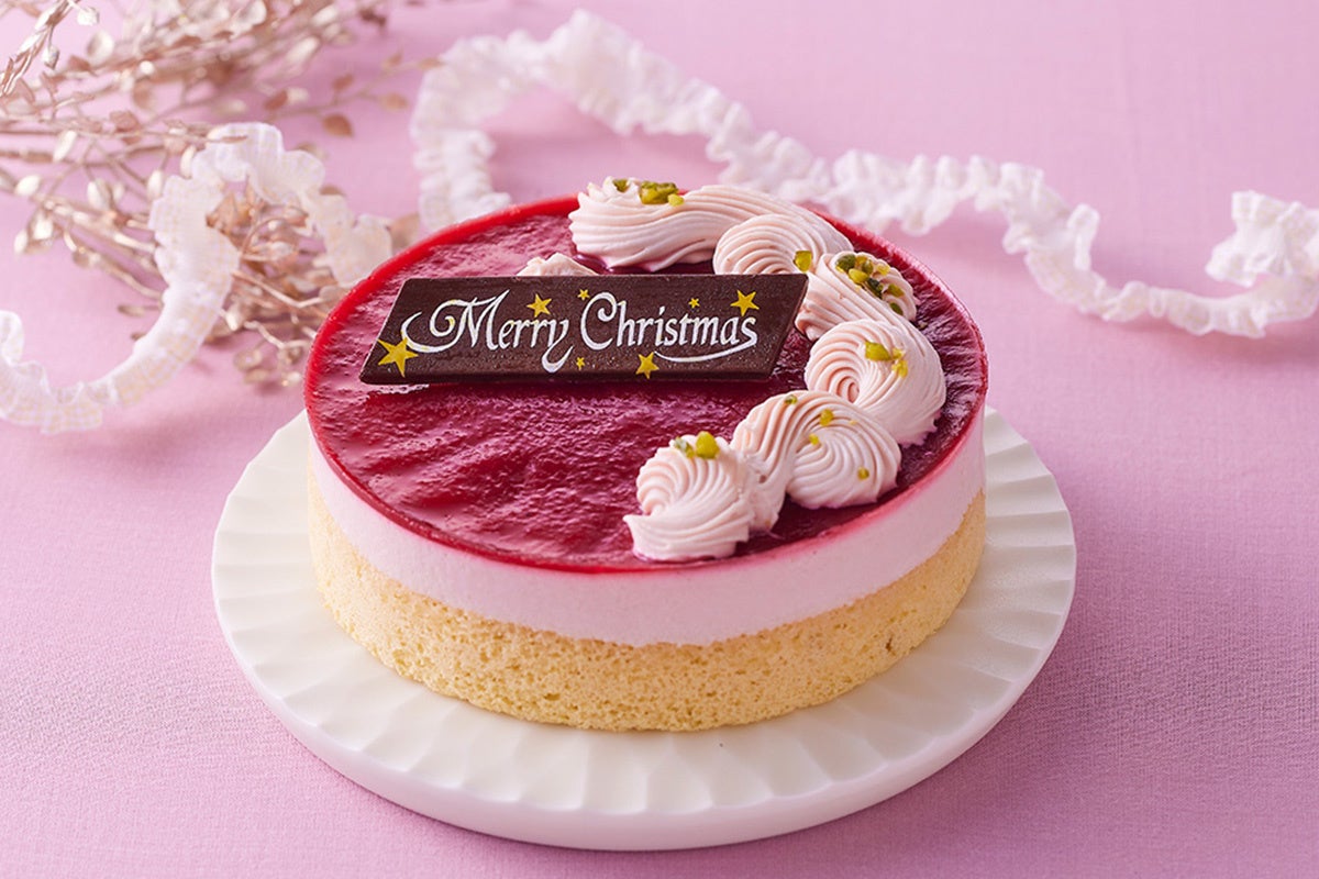 福岡県産あまおう苺とヨーグルトのムースに、甘酸っぱいフランボワーズジュレがアクセントになっています。ムースの側面には国産小麦を使用したふわふわ生地のスポンジを使用。脱プラスチックの観点からプラスチック製オーナメントは付いていません。