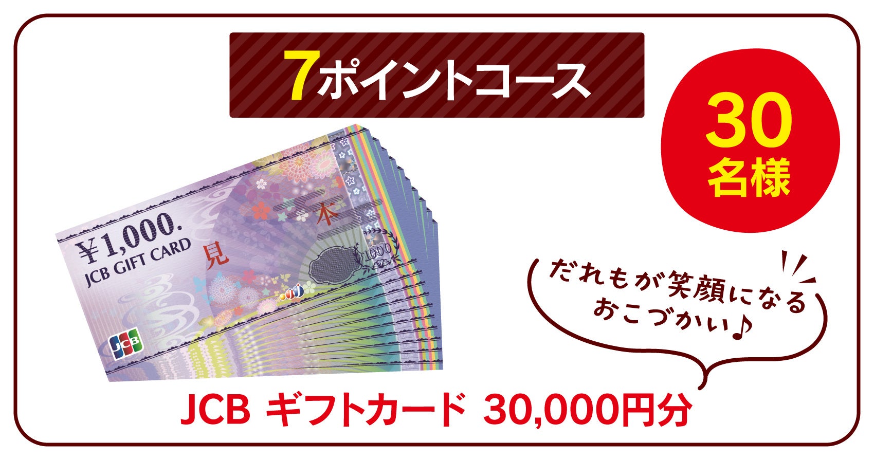 JCBギフトカード 30,000円分………………………抽選で30名様