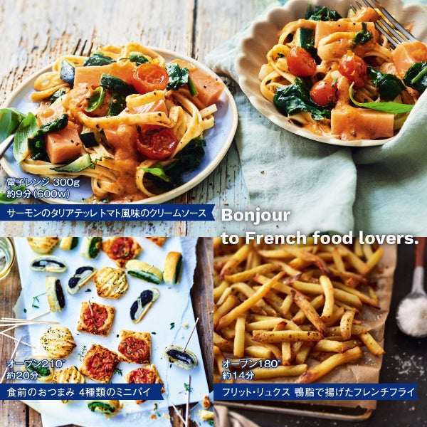 4種類の味が楽しめるミニパイに、皮つきのジャガイモを鴨脂で揚げ、ガーリックパウダーと塩で味付けをした贅沢なフレンチフライ、サーモンと野菜がごろごろ入ったトマトクリームソースのタリアテッレのセットです。カジュアルなパーティーにもおすすめのひと品です。