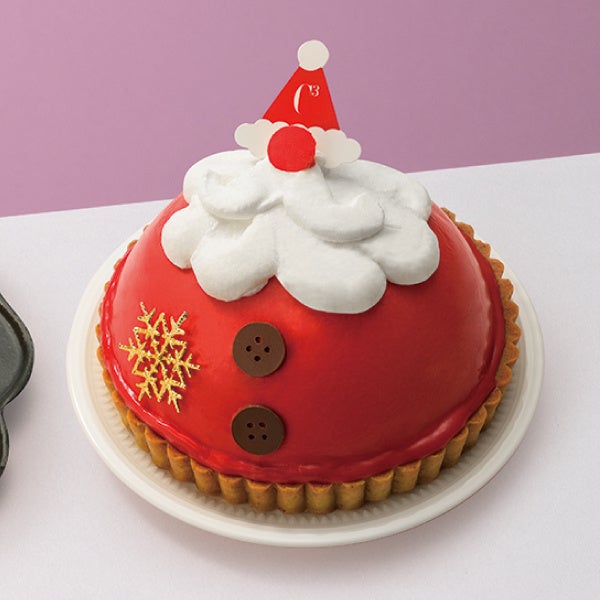 まろやかな甘さのマスカルポーネムースや、甘酸っぱいベリーのシロップとジュレの相性が抜群のケーキです。イチゴ味の真っ赤なグラサージュとクリームの髭でサンタクロースをデザインしています。