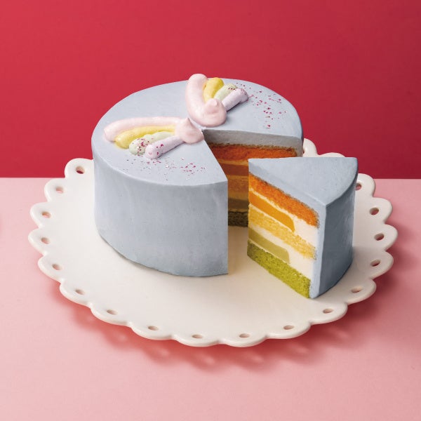 「オレンジ」「マンゴー」「レモン」「マスカット」「青りんご」と、様々なフルーツの風味を味わえる色鮮やかな断面をお楽しみいただけるケーキです。