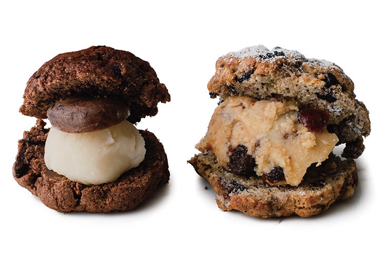 ラムレーズン餡バター スコーンサンド (写真右) 各¥390(税抜き¥361)