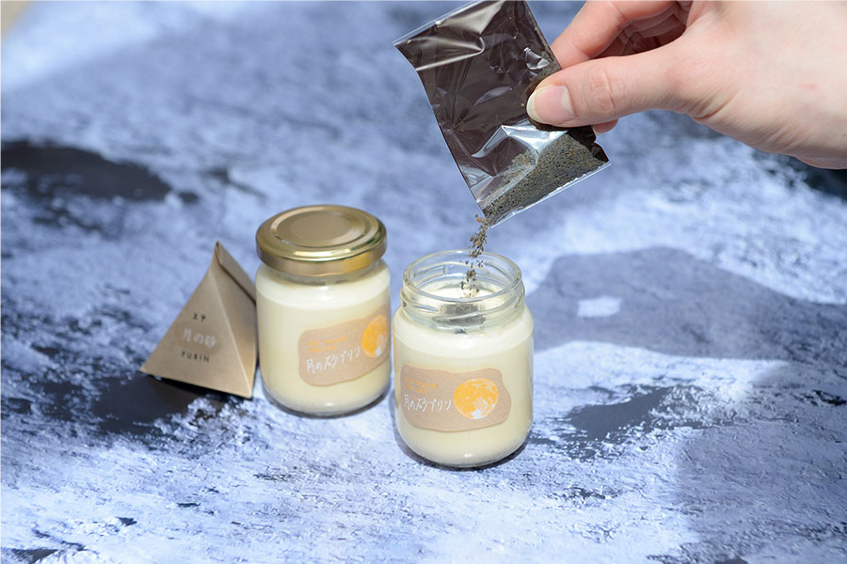 鳥取県のTotto PURINとのコラボ商品「月の砂プリン」は日本一に輝いたご当地プリンである、鳥取砂丘の新名物「砂プリン」を、レゴリスと言われる”月の砂”にアレンジ!