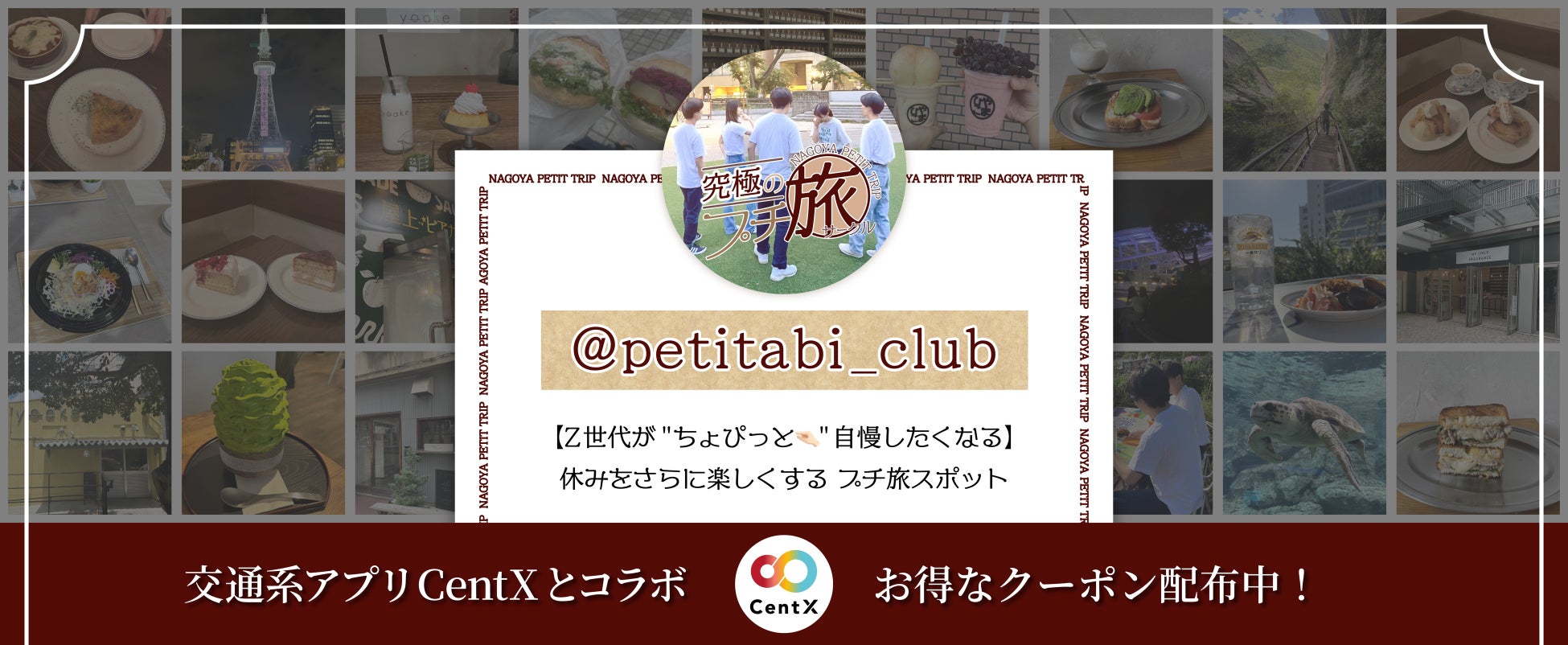 毎月お得なクーポンやチケットを配布しておりますので、ぜひ『CentXアプリ内』から、もしくは『Instagramお出かけアカウント”@petitabi_club”』をご確認ください!