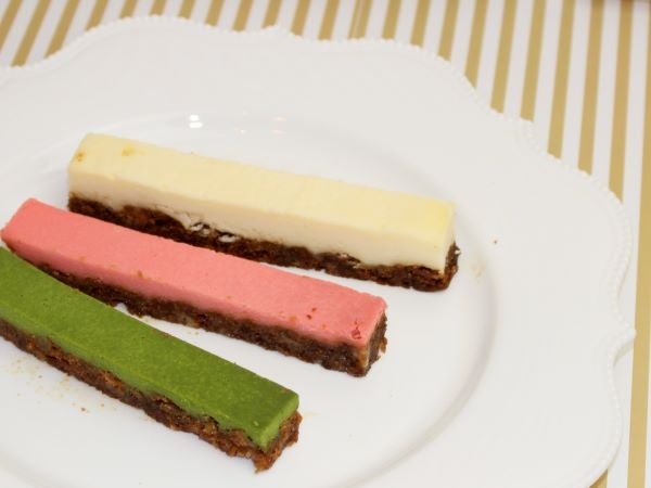 Carin&フロマージュは底面に砕いたかりんとを敷き詰めた、風味豊かなチーズケーキです。口に入れると、かりんとの香ばしさが広がり、チーズケーキのコクと程よく調和します。プレーン/ストロベリー/抹茶の3種をお楽しみください。