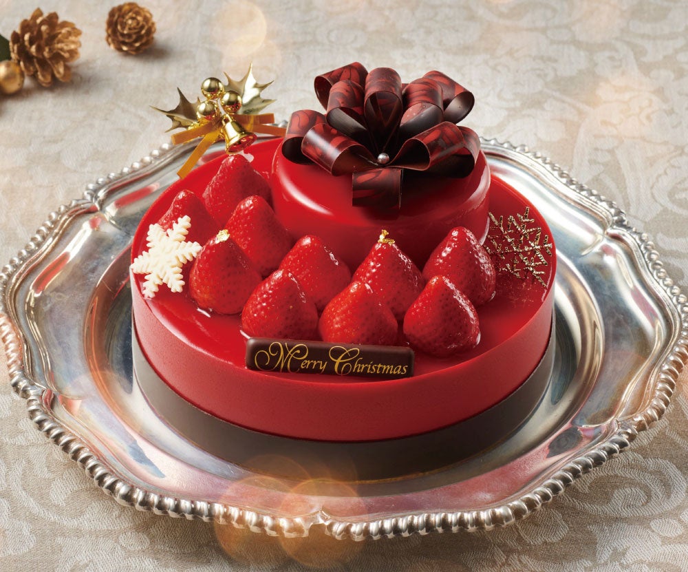輝く苺を宝石に見立てたクリスマスのスペシャルデコレーション。風味豊かなアーモンドスポンジで、苺とフランボワーズのムース、北海道産生クリームをブレンドしたクリームと苺をサンドしました。