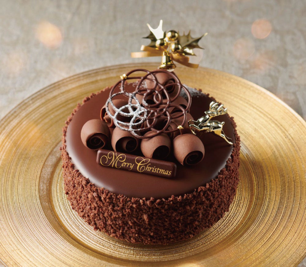 コクのあるガナッシュクリームをチョコアーモンドスポンジに重ね、さらにチョコレートで包みました。ケーキの上にはナッツ風味のジャンドゥヤチョコでクリスマスツリーを表現した、濃厚なチョコレートケーキです。