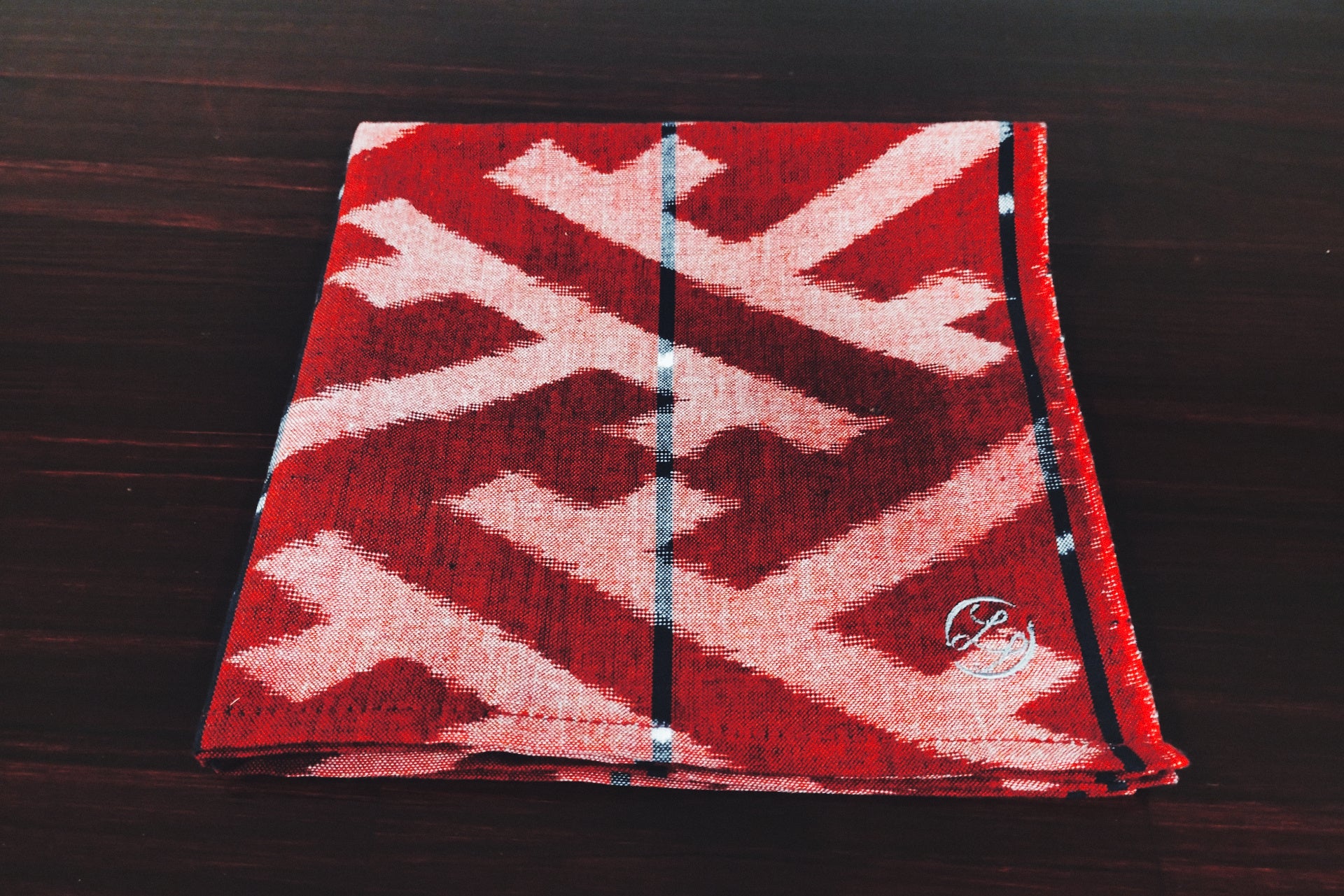 そして、この18cm四方のハンカチは、あの「ザ・リッツ・カールトン福岡」のインスタレーションを手掛けた「下川織物」製。