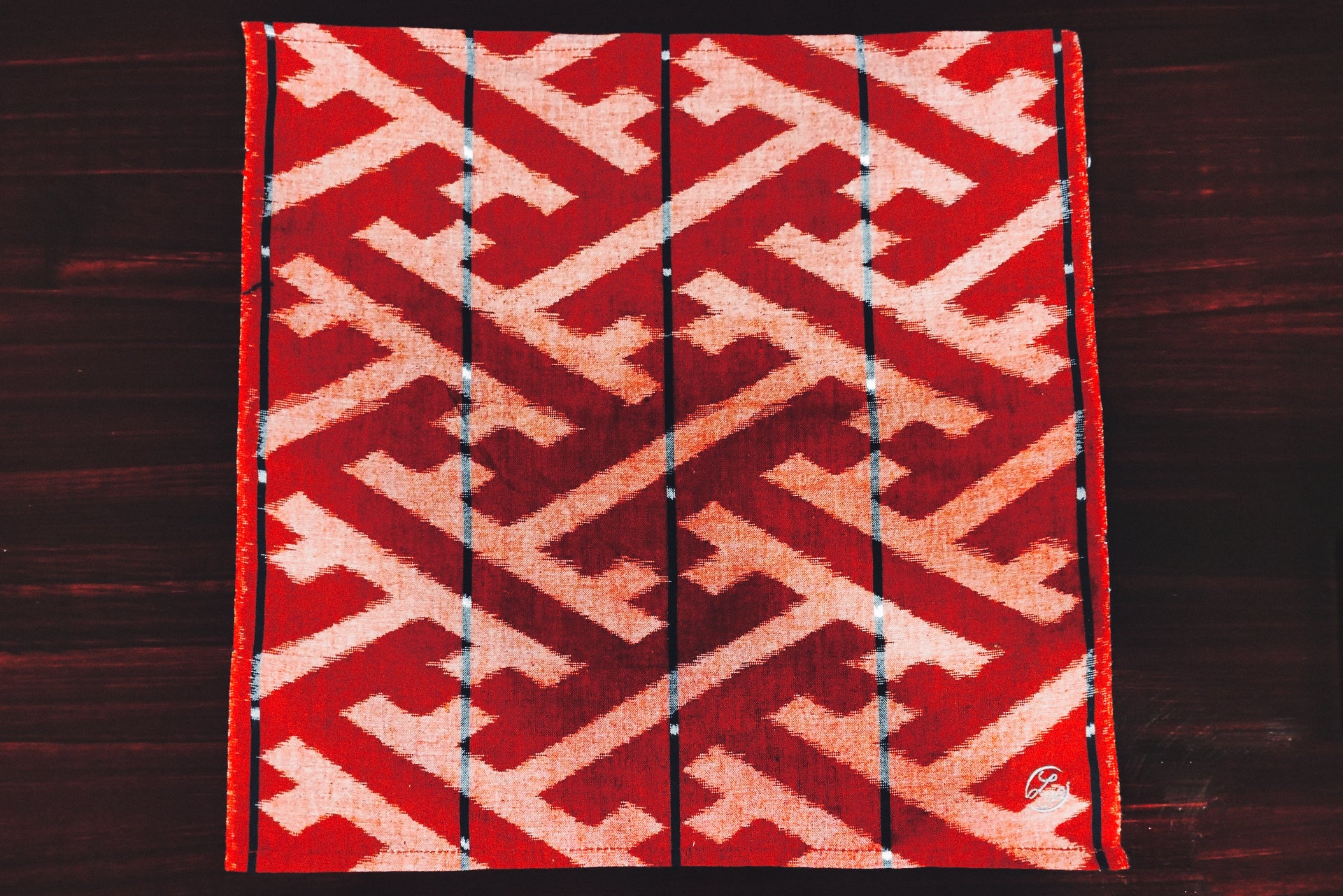 そして、この18cm四方のハンカチは、あの「ザ・リッツ・カールトン福岡」のインスタレーションを手掛けた「下川織物」製。