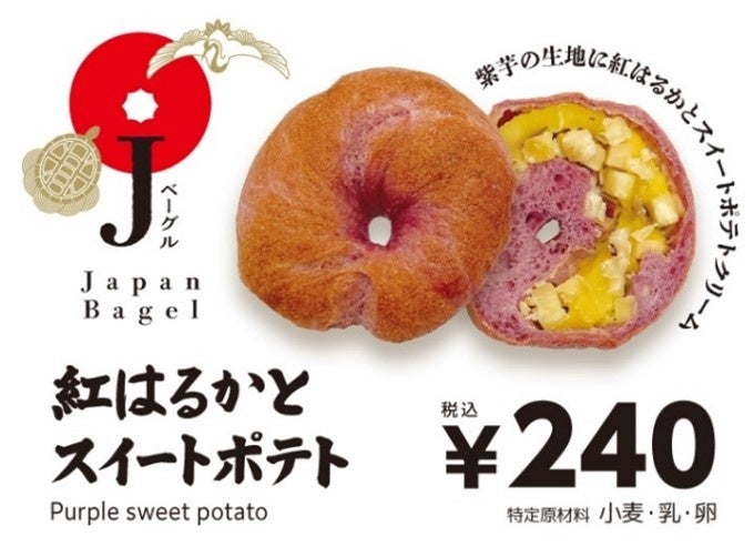 秋の味覚が楽しめる、甘くて美味しいベーグル。サイコロ状の紅はるかとスイートポテトクリームが入ったおやつにピッタリなほっこり一息つける商品です。