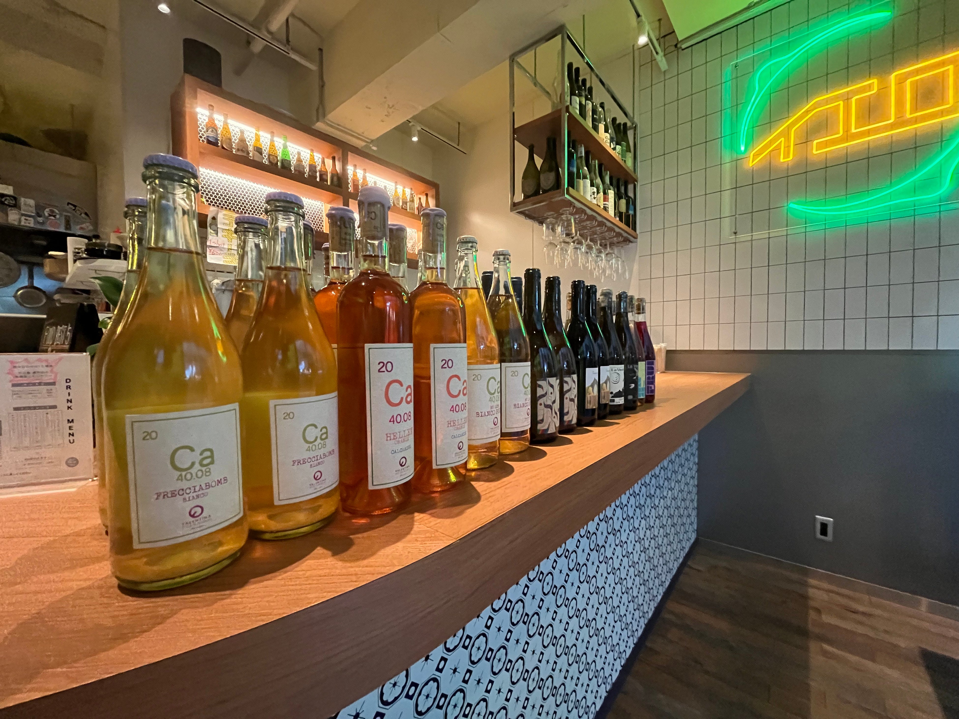広島県生口島の瀬戸田町の無農薬レモンで作る15種類のレモンサワーをはじめ、秋葉原では珍しい数十種類のナチュラルワインも揃える。