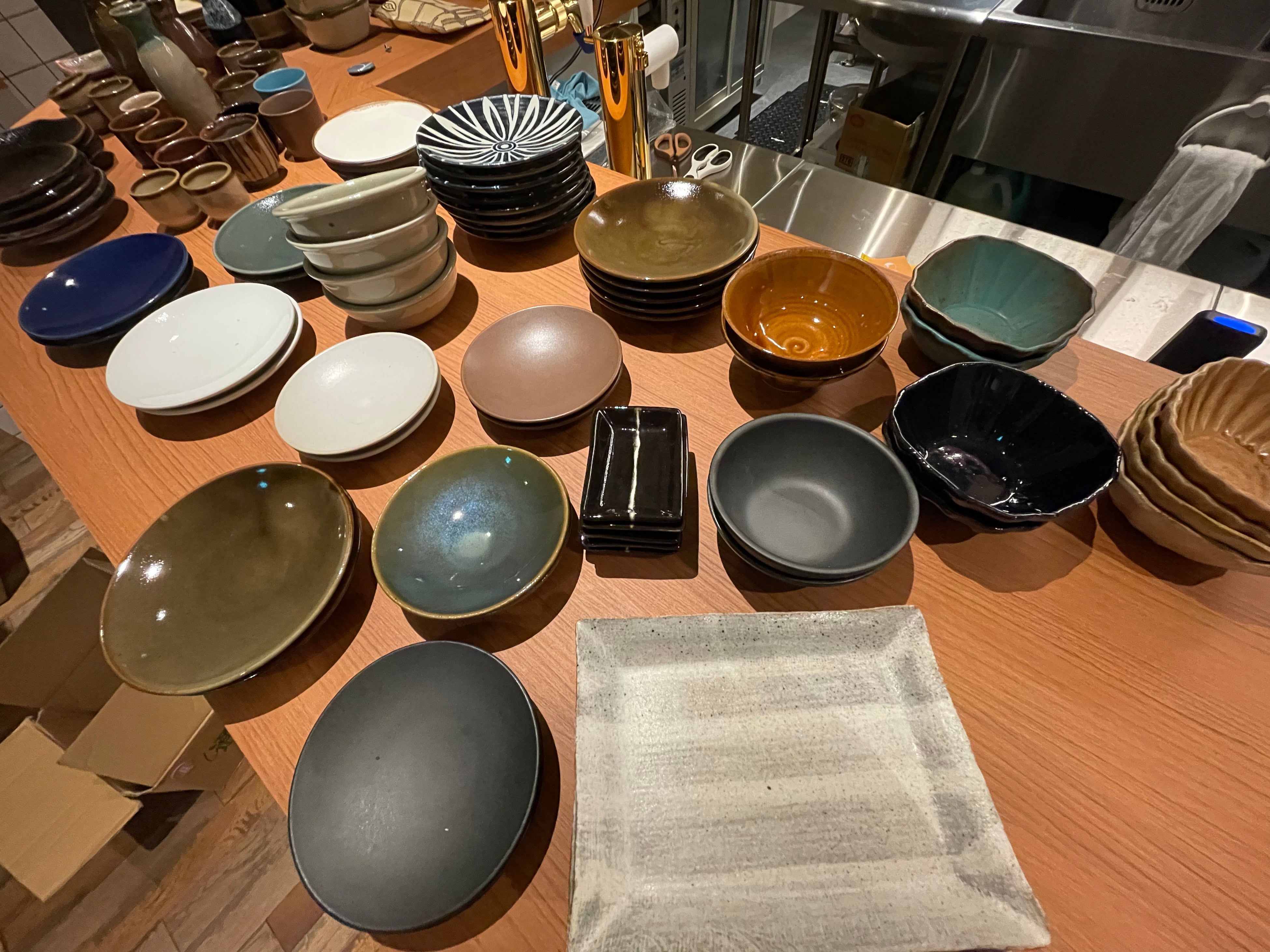 陶器類はオーナーの地元栃木の陶器である益子焼を使用。スタッフと現地まで行って買い付けてきた。