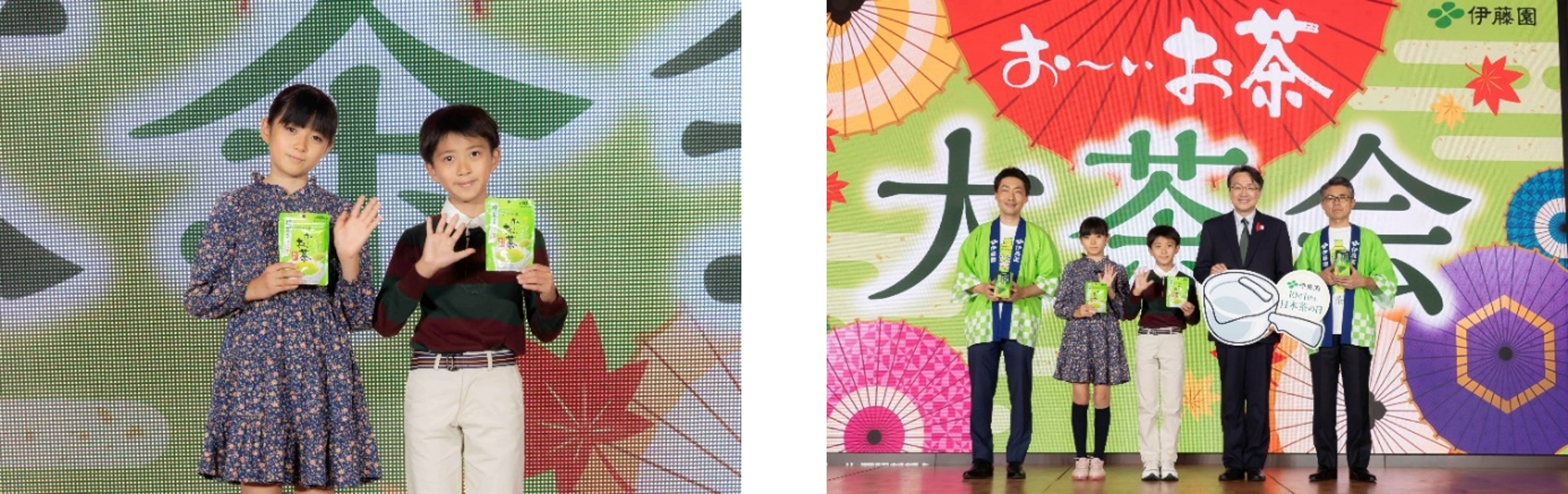 本イベントでは「日本茶の日 お~いお茶大茶会」を通して「茶業関係者×農林水産省『茶育』プロジェクト」の取り組みをご説明するとともに、市川ぼたんさん、新之助さんにもご登場いただき、美味しいお茶のいれ方の体験や試飲をしていただきました。