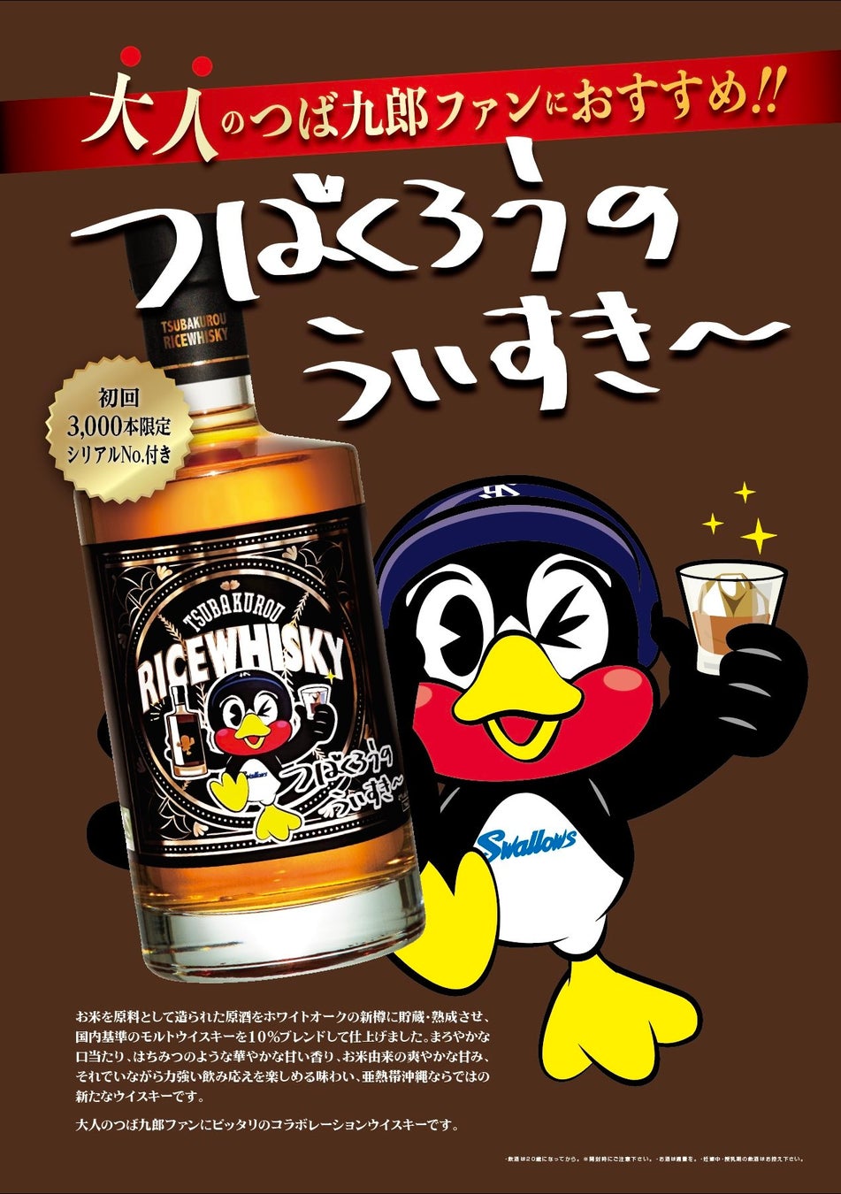 久米仙酒造株式会社(本社:沖縄県那覇市代表取締役社長:比嘉洋一)は、東京ヤクルトスワローズ(以下「スワローズ」)の球団マスコット「つば九郎」とコラボした「つばくろうのういすき~」を10月1日(日)より店舗および公式オンラインショップにて販売開始いたしました。