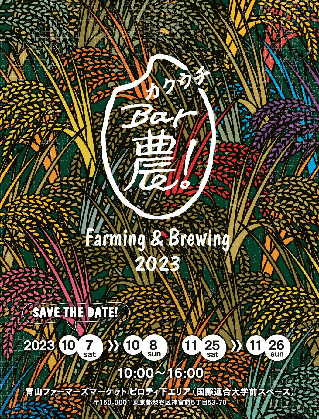 10月・11月それぞれ2日に及び、11蔵ずつが出店いたします。「カクウチBar農!」と題し、出店酒蔵の日本酒が飲める角打ちを行うほか、日本酒商品の販売も同時に行います。
