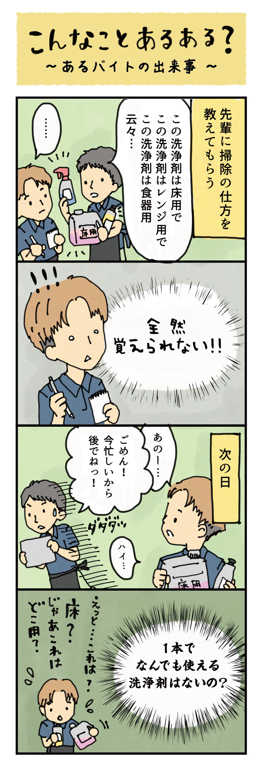 レンジフード・レンジ周りの変性した油汚れから、カレー鍋のこびりついた汚れ、床のベトベト汚れまで広範囲に使用できるので、洗剤の集約が可能です。