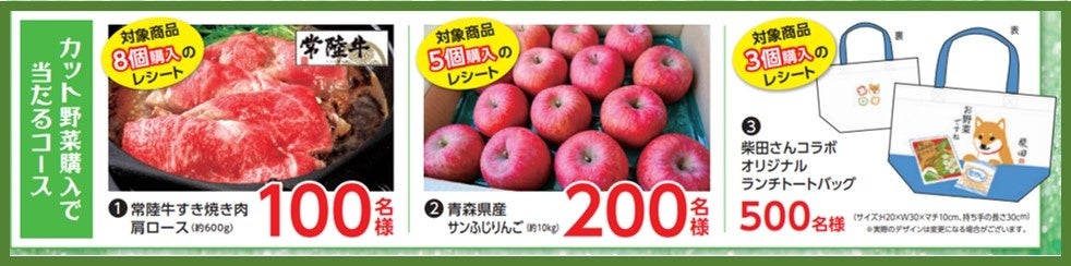 ① 「カット野菜購入で当たるコース」(もやし以外の商品)