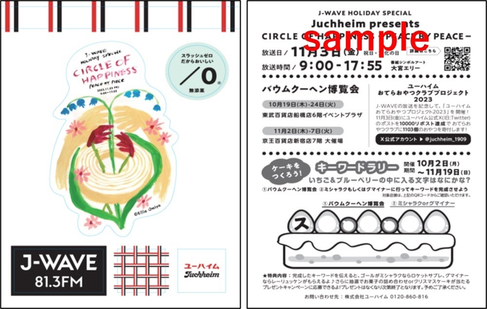 今回の番組のシンボルアートを制作してくださったのは、アーティスト・大宮エリー氏。このシンボルアートを使用したステッカーを、本日10月2日(月)より、首都圏のユーハイム店舗やイベント会場にて配布開始します。またステッカーを利用したキーワードラリーも開催します。