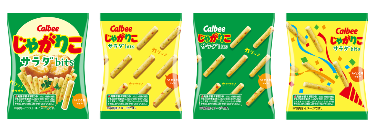 近年、在宅時間の増加など、喫食シーンが拡大してアソート市場が伸長していることから、「じゃがりこ サラダbits」のマルチパックを発売する運びとなりました。1袋16gの食べきりサイズで、家族や友人とのシェアや、在宅勤務中のおやつ等、様々なシーンで気軽にお楽しみいただけます。