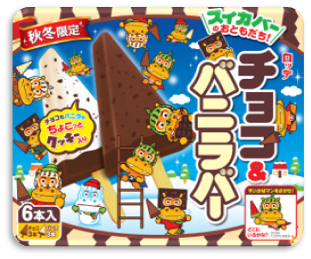 株式会社ロッテは、あのロングセラーブランド「スイカバー」から、毎年、春夏限定で販売している「スイカ&メロンバー」のおともだちアイス、秋冬限定 「チョコ&バニラバー」 を10月9日より全国で販売開始します。スイカバーと同じ「三角形」のアイスで、子供が大好きな「ココアクッキー」が入った仕立てで、味は、チョコ味とバニラ味が楽しめる2種アソートになっています。秋冬限定の新商品をぜひお試しください。