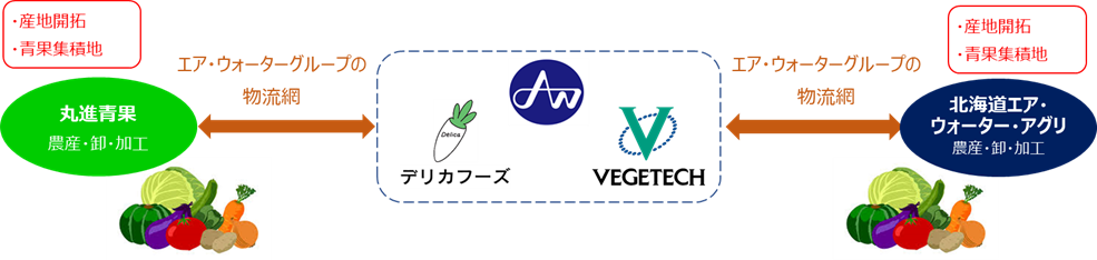 当社グループとベジテック、デリカフーズホールディングスは北海道と九州における青果物の調達網をより強固なものとし、その加工・販売までのバリューチェーンと物流ネットワークを併せ持つ「青果流通加工プラットフォーマー」のポジションを確立。持続可能な国内農業の発展に寄与するとともに、産地と食卓をつなぎ、時代に応じた豊かな食文化を創出し、ウェルネス(健やかな暮らし)に貢献してまいります。