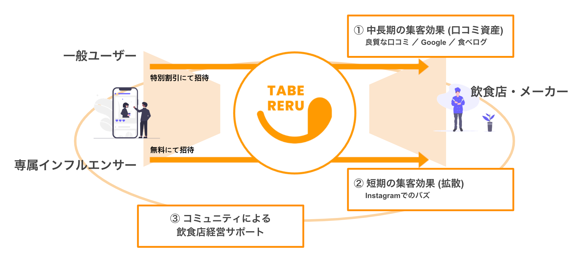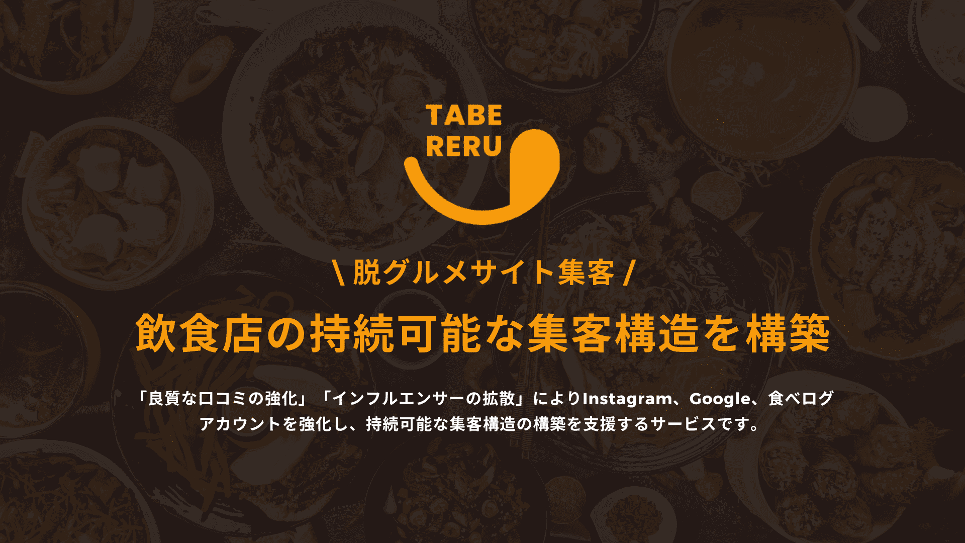 TABERERU(タベレル)とは、自社メディアの口コミを強化し、持続可能な自社集客構造の構築を支援するサービスです。
