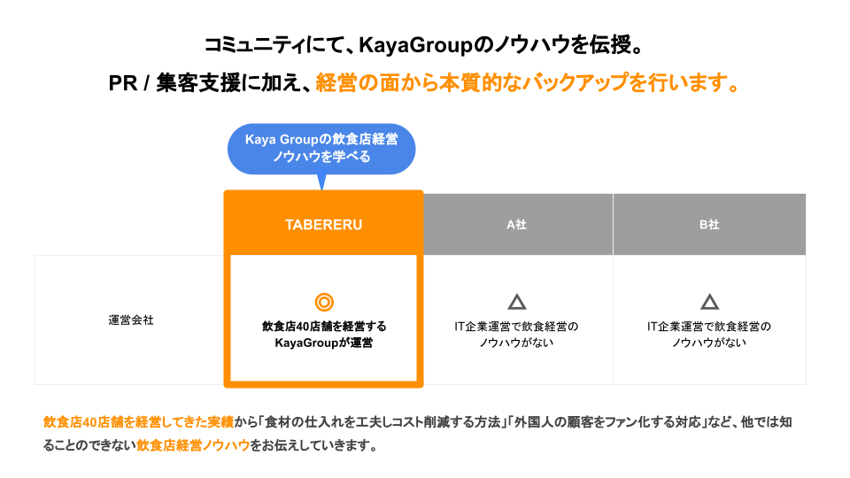 ・飲食40店舗以上を経営するKayaGroupによるノウハウ提供
