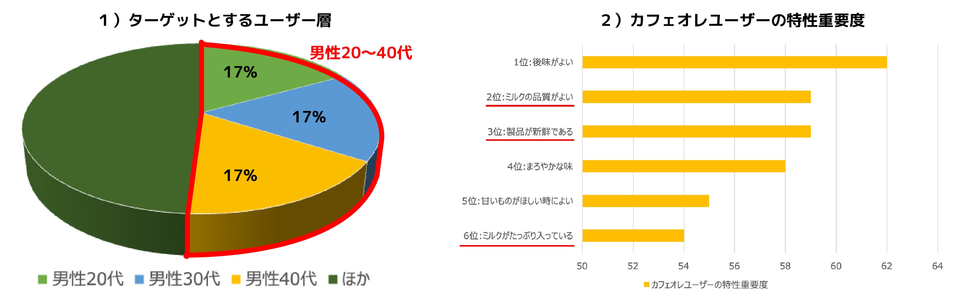 1)カフェオレ愛飲者の約半数以上が、男性20〜40代