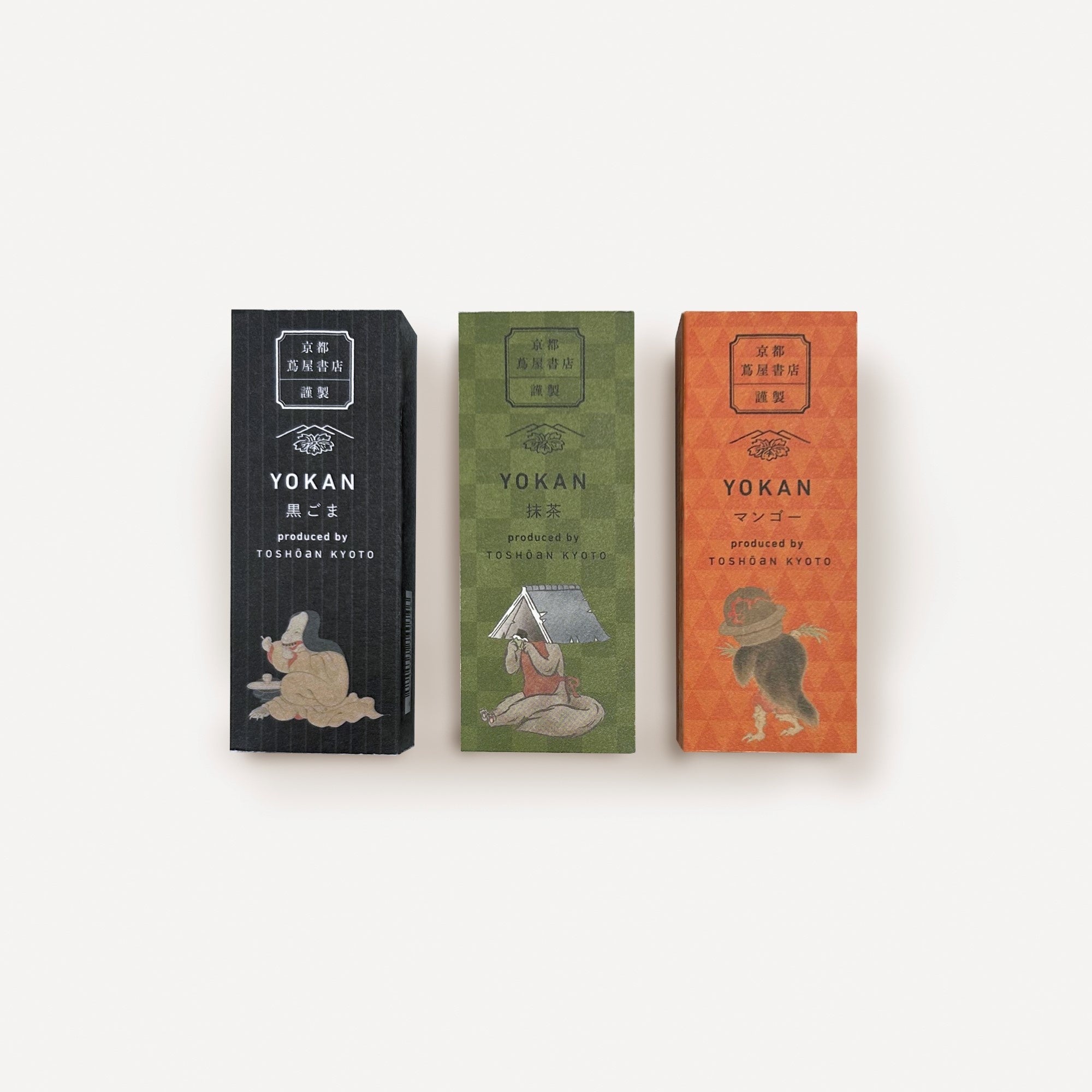 昭和25年京都創業のあんこ屋が手がけるあんこ菓子専門店・都松庵の本格羊羹。浅練りで甘さが後に残らないすっきりした口当たりが特徴。海外の方にも人気が高い宇治抹茶を使用した「抹茶」、百鬼夜行に登場するお歯黒の妖怪をイメージした「黒ごま」、食べた時の驚きを楽しめる変わり種「マンゴー」の3つのフレーバーを揃えました。