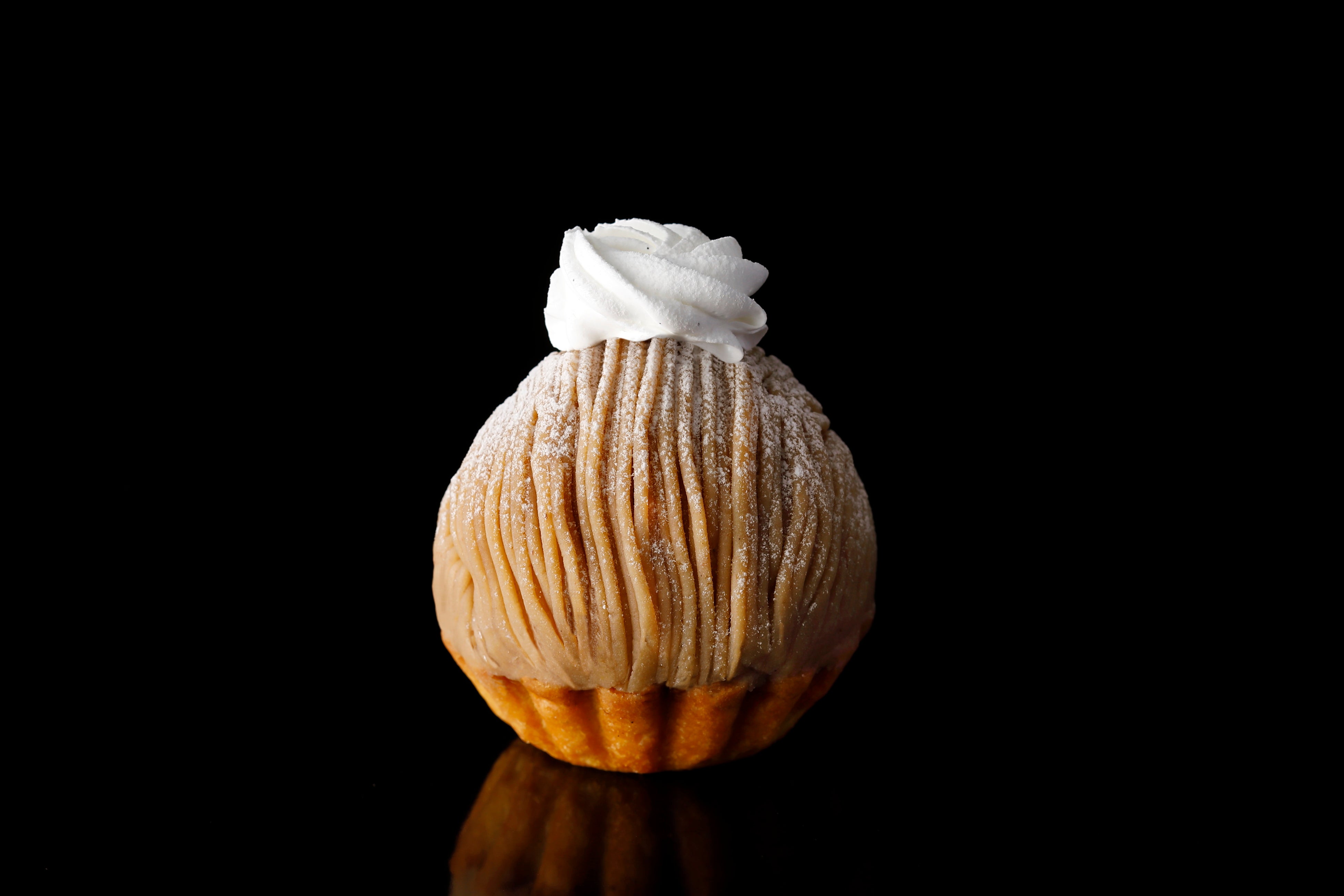 東京・文京区千石にある<トレカルム>は、<ホテル西洋銀座><銀座レカン>など国内の名店や本場フランスで研鑽を積んだ、木村忠彦シェフが営む2014年にオープンしたパティスリーです。「モンブランジャポネ」は栗嫌いなシェフが6年の歳月をかけて創り上げたスペシャリテである「モンブラン」を和素材でアレンジ。上品な甘さとなめらかさが特徴的な愛媛県産中山栗に、沖縄県産和三盆、黒糖、クルミを合わせました。外側に、食感と香りを楽しめるきな粉とクルミのメレンゲを飾り、見た目、味わい共に唯一無二のモンブランに仕上げました。