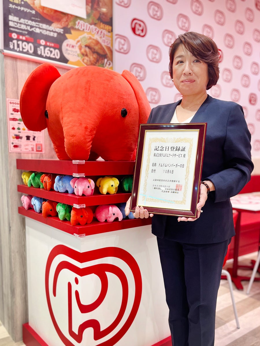 ドムドムの「ド(10)ム(6)」と読む語呂合わせから10月6日が「ドムドムハンバーガーの日」として制定され、日本記念日協会より記念日登録証をいただきました。