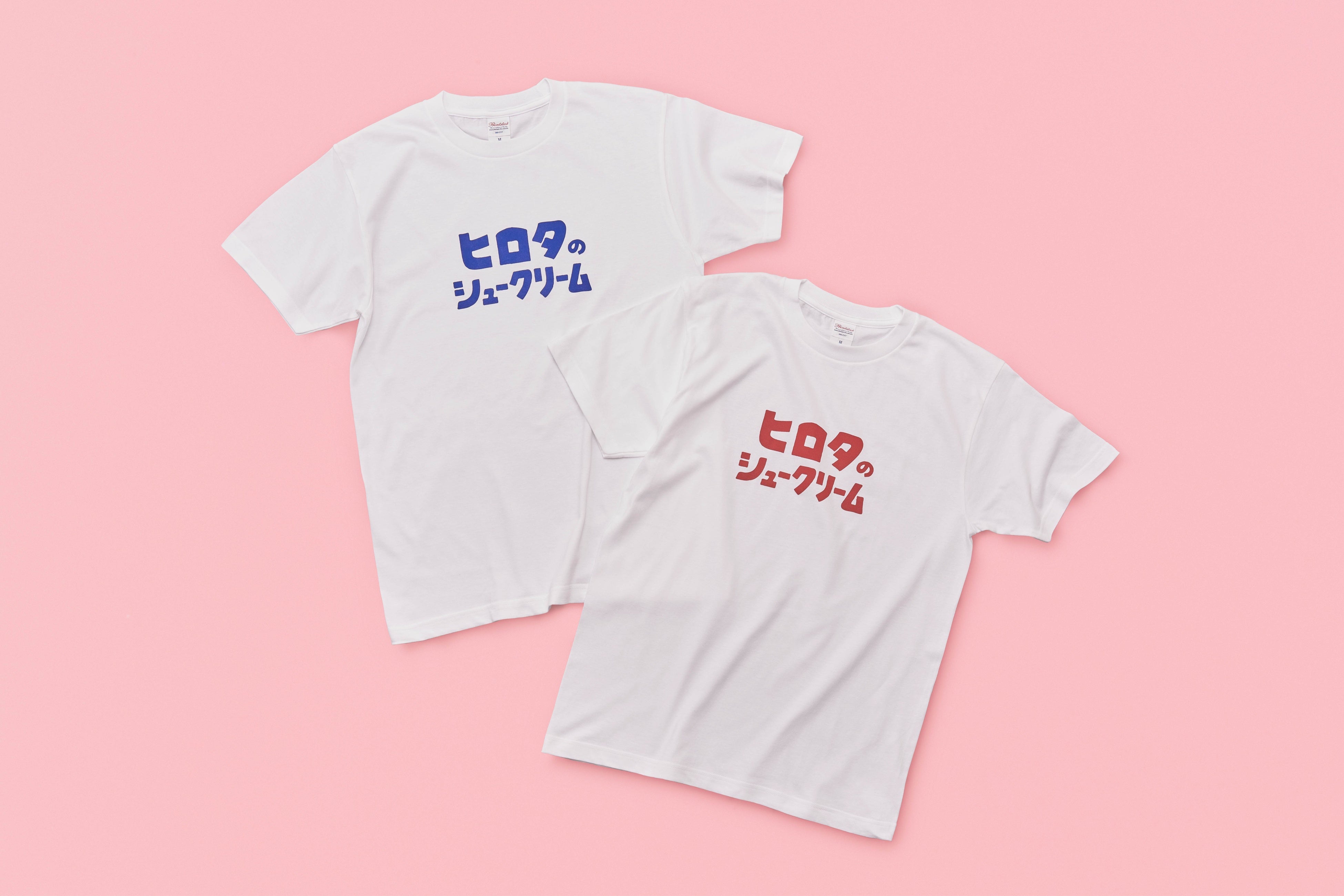 商品特長:ヒロタのシュークリームのロゴを配した、レトロな印象が楽しめるTシャツ。お色味はヒロタブルーと赤の2色展開です。
