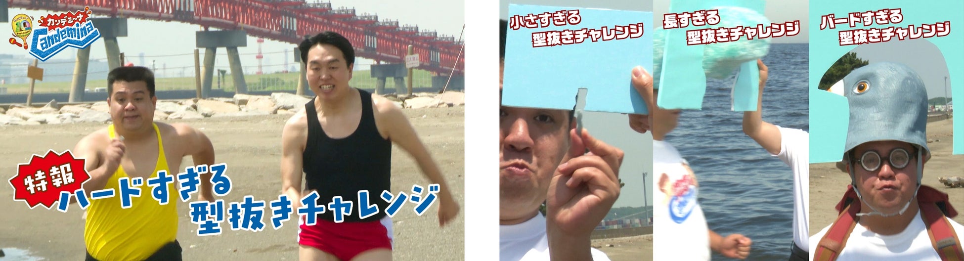 本日公開の新CM「ハードすぎる型抜きチャレンジ」は、他に類を見ないグミ型でエンターテイメントを提供するハードグミ、カンデミーナの特徴を楽しく表現した内容です。ジェラードンの人気ネタである、アタック西本さんの角刈り型に切り抜かれたボードにギリギリ当たらないようにくぐり抜ける“型抜き”を今回、カンデミーナの様々なグミ型に合わせてアレンジしました。「小さすぎる型抜き」「長すぎる型抜き」「バードすぎる型抜き」の異なる3種の型抜きにチャレンジしています。
